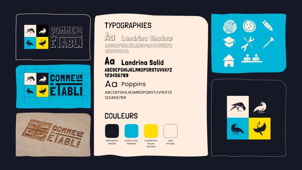 Dans le cadre d’un projet interdisciplinaire en mastère, mené avec des designers d’espace et de produit, nous avons travaillé sur l’évolution de l’identité de Comme un Établi.