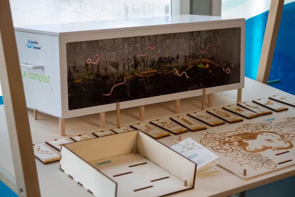 Notre projet, réalisé en collaboration avec l’association Les Marteaux du Jardin, porte sur le compostage, avec un focus particulier sur le rôle des collemboles, des microscopiques insectes alliés du compost. Nous avons développé une activité ludique consistant en un jeu d’erreurs sur les petites bêtes du compost, accompagnée d’un composteur pédagogique sur place. Cette initiative vise à démontrer comment la nature peut devenir un allié précieux dans la gestion de nos déchets, grâce à ses écosystèmes et ses habitants. L’objectif est de promouvoir une alliance vertueuse entre l’homme et la nature, illustrant comment le compostage peut être intégré dans le jardin pour créer un cercle vertueux de gestion des déchets organiques.